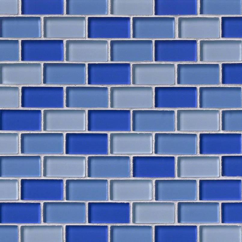 BLUE BLEND BRICK GLASS 1X2X8MM Glass Backsplash Tile